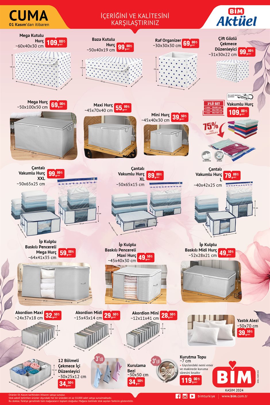Ürünler 1 Kasım’dan itibaren tüm BİM mağazalarında stoklarla sınırlı olarak satışta olacak.