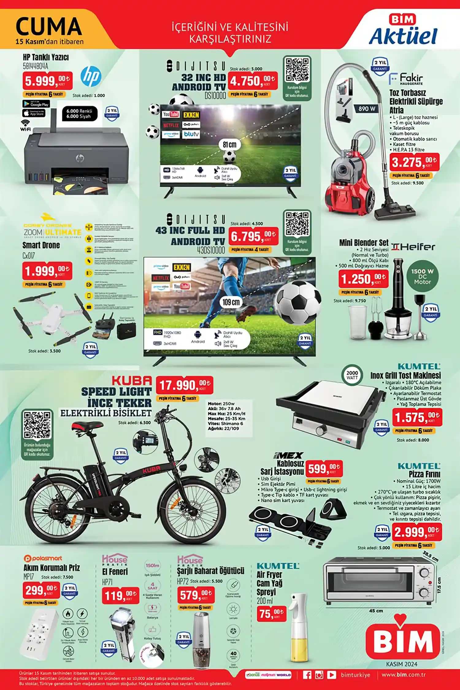 BİM’de bu hafta yazıcı, smart drone, kablosuz şarj istasyonu, pizza fırını, tost makinesi gibi birçok üründe yeni indirimler yer alıyor.