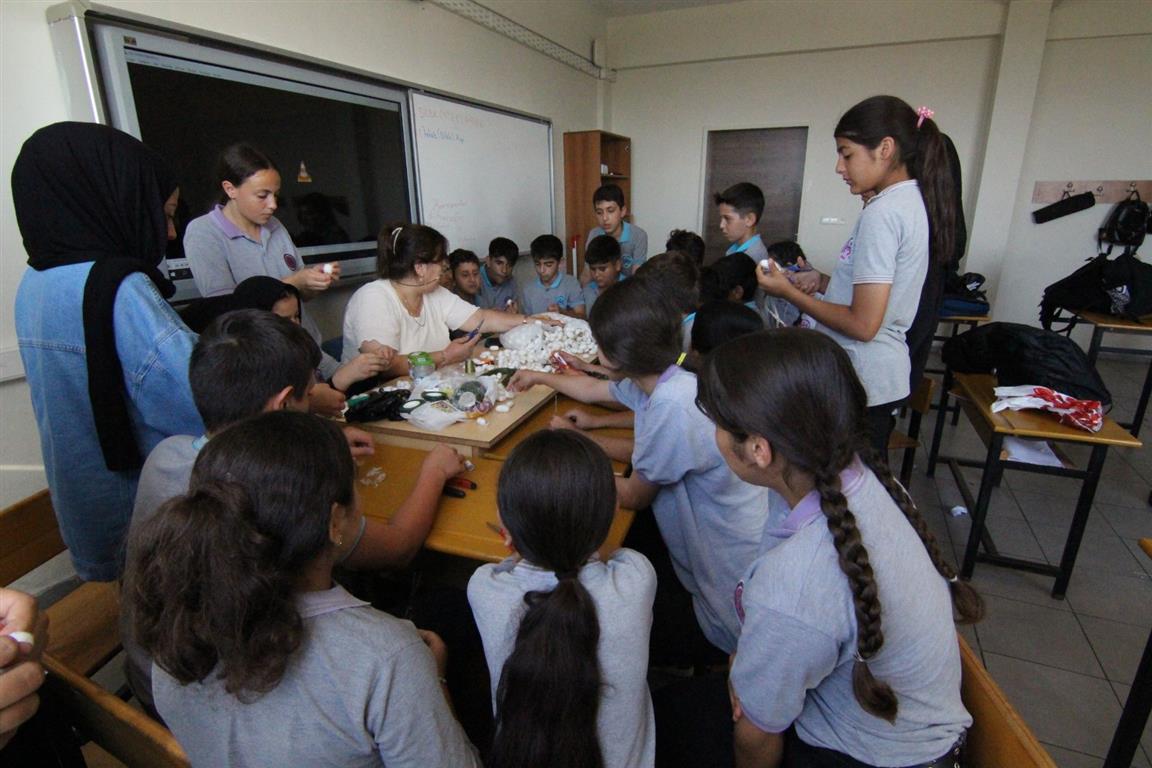 Alanya Belediyesi’nin sosyal sorumluk projeleri kapsamında Payallar Günay Demirel Ortaokulu öğrencilerine, ipek kozasından çiçek yapımı eğitimi verildi.