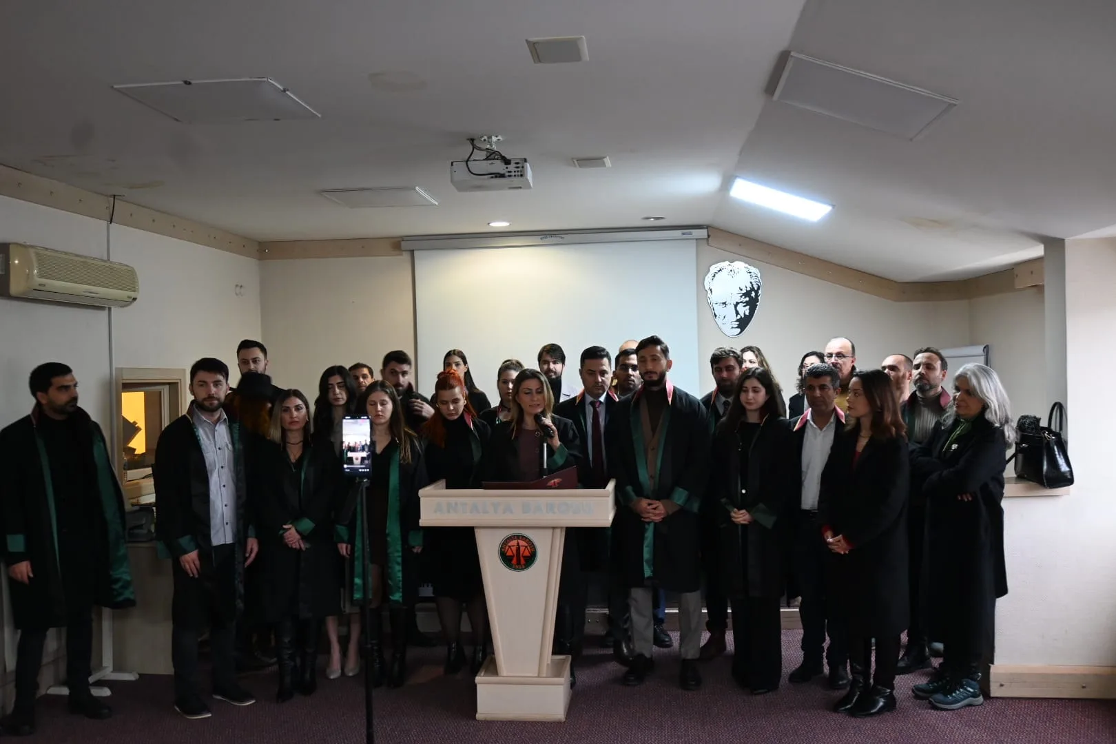 Konuya ilişkin bugün (13 Şubat) saat 12.00’de basın açıklaması gerçekleştirildi. Baro adına açıklamayı Antalya Barosu Başkan Yardımcısı Yasemin Sönmez okudu.