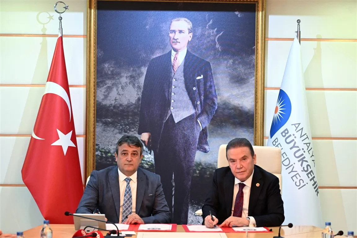 Antalya Büyükşehir Belediye Başkanı Muhittin Böcek, Belediye İş Sendikası Antalya Şube Başkanı Mehmet Mercan ve Güvenlik İş Sendikası Antalya Bölge Başkanı Recep Mutaf ile 1 Ocak 2025- 31 Aralık 2026 tarihleri arasını kapsayan Toplu İş Sözleşmesi Protokolü imzalandı.