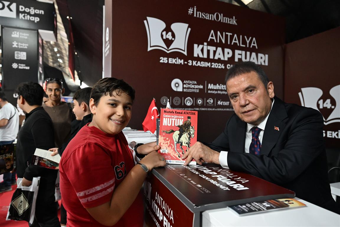 Antalya kitap fuarına ev sahipliği yapan Antalya Büyükşehir Belediye Başkanı Muhittin Böcek de, vatandaşlarla bir araya geldi. “Ben Bu Şehre Aşığım” ve “İkinci Yaşam; Siyaset ve İhanet” kitaplarını imzalayıp, vatandaşlarla sohbet eden Başkan Muhittin Böcek, kendisini sevenlerle fotoğraf da çektirdi. Başkan Böcek, vatandaşlara ve fuara katılan yazarlara katılımlarından dolayı teşekkür etti.
