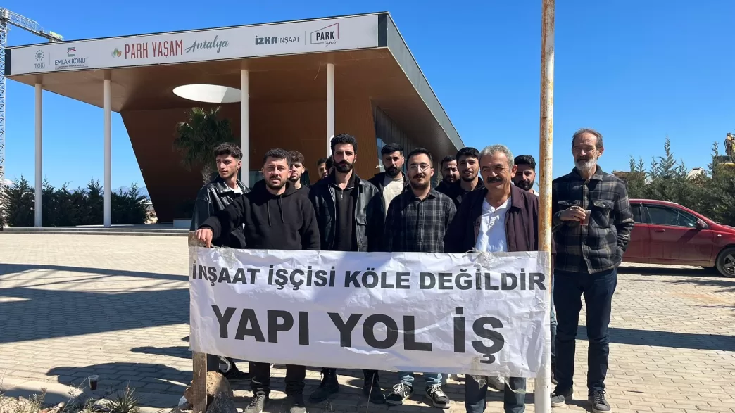 Antalya’nın Aksu ilçesi Altıntaş Mahallesi’nde, TOKİ ve Emlak Konut işbirliğiyle yürütülen Park Yaşam Projesi’nde çalışan inşaat işçileri haklarının gasp edildiğini ve ücretlerinin ödenmediğini belirterek 8 Mart’ta eylem başlattı.