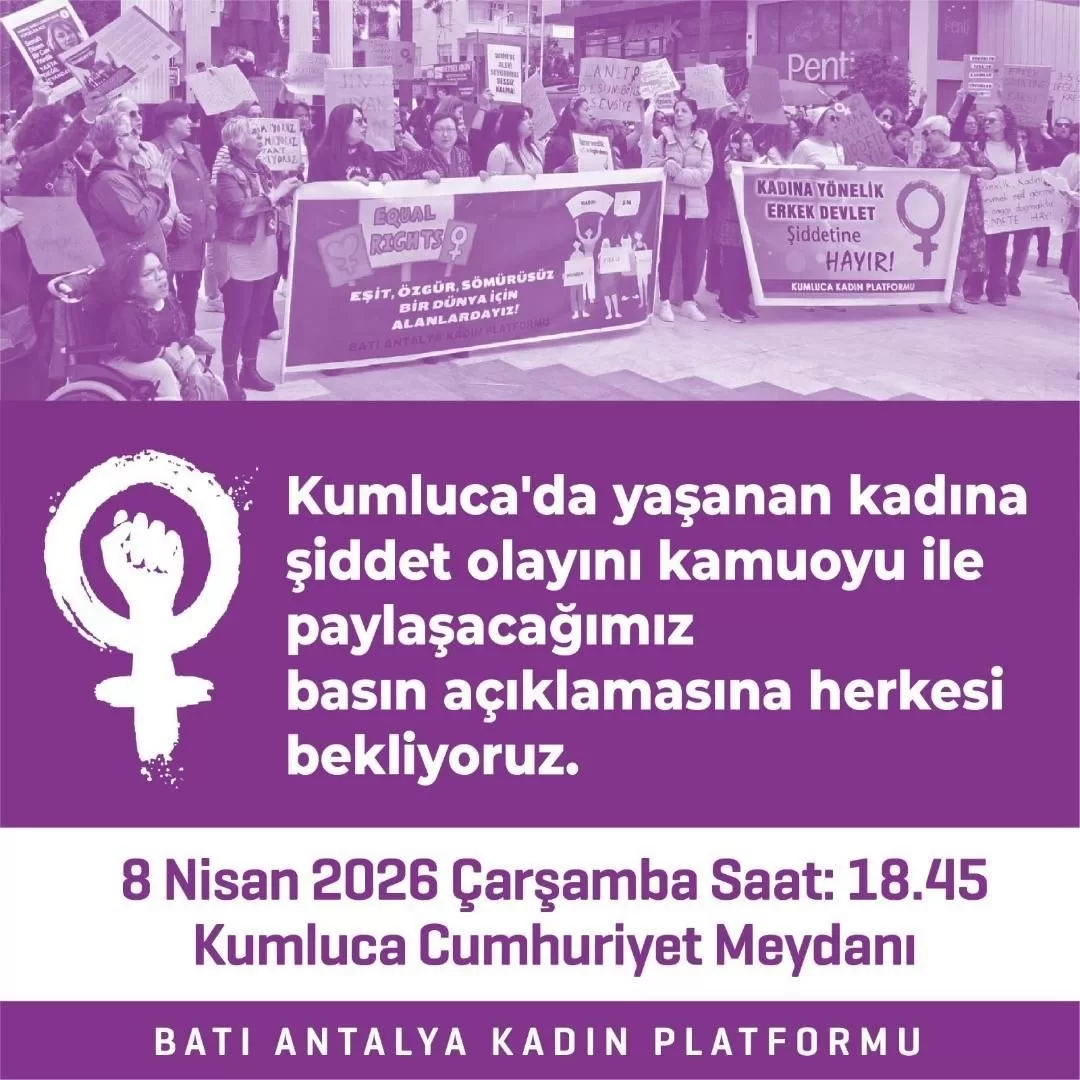 Batı Antalya Kadın Platformu tarafından, Sabiha İnce’nin maruz bırakıldığı şiddete ve karşılaştığı kurumsal engellere dikkat çekmek amacıyla yarın (8 Nisan) Kumluca Cumhuriyet Meydanı’nda basın açıklaması yapılacağı duyuruldu.