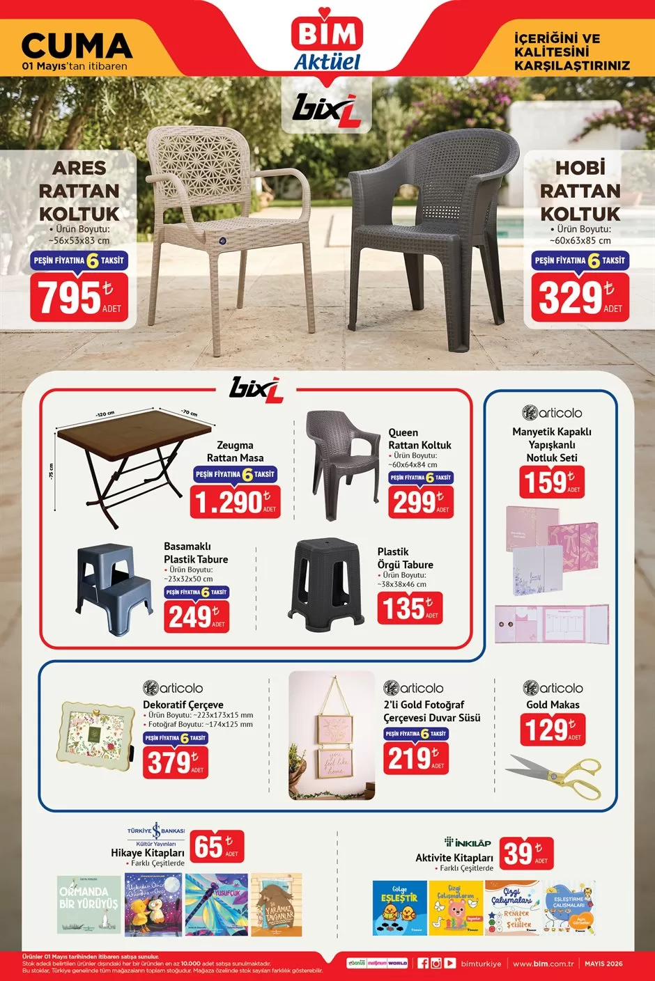 BİM 1 Mayıs 2026 aktüel kataloğunda yer alan ürünlerin stok adetleri mağazalara göre değişebilecek. Ürünler 1 Mayıs Cuma gününden itibaren satışa sunulacak.