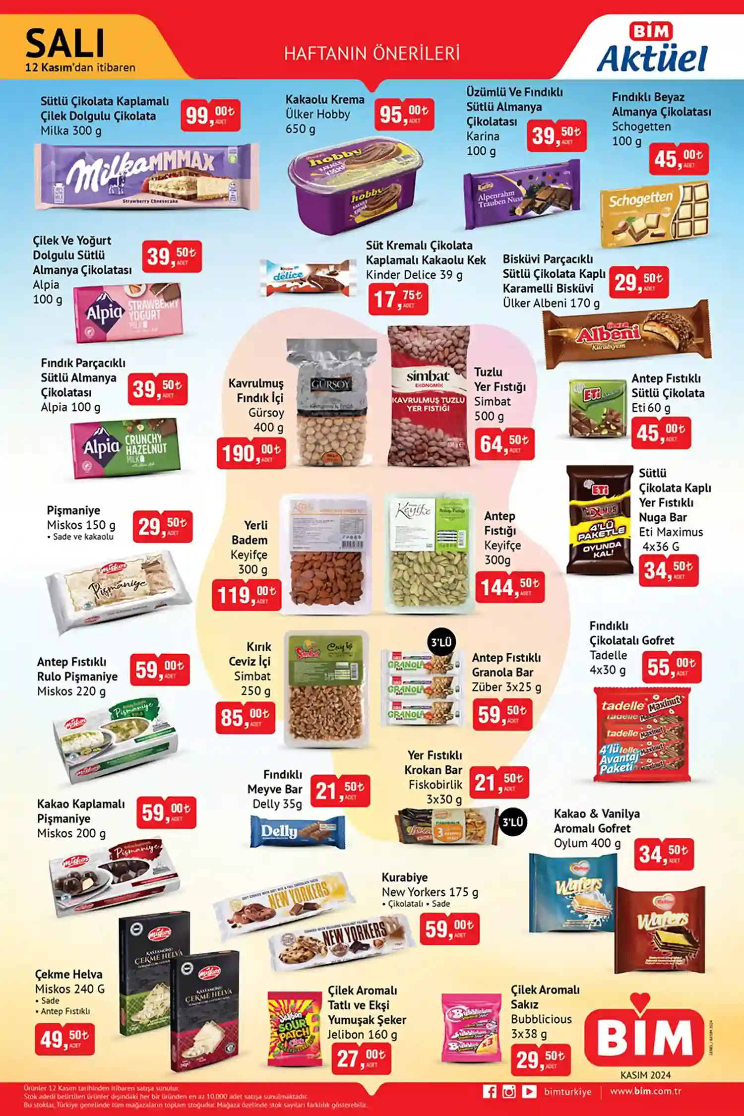 BİM, 12 Kasım 2024 Salı günü geçerli olacak aktüel ürünler kataloğunu duyurdu. Haftanın öne çıkan indirimli ürünleri arasında;