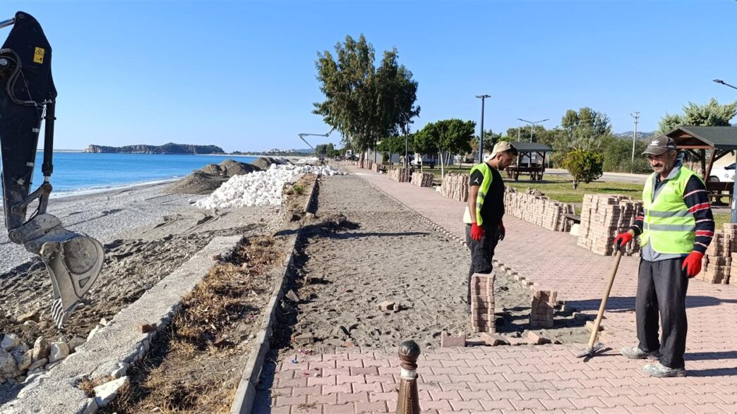 Yerinde yapılan incelemeler doğrultusunda deforme olmuş ve yıkılmış olan sahil kısmı ile rekreasyon alanını sınırlayan yaklaşık 400 metrelik alanda taş istinat duvarı yapılıyor. Duvar yüksekliği sahil kotundan yaklaşık 2.20 metre yüksekliğinde olacak. Bununla beraber sahil üst kotunda rekreasyon alanında bulunan yürüyüş yolunun kilit parke taşları ve bordürlerinin belirli alanlarında yenileme çalışmaları ve çevre düzenlemesi de yapılacak.