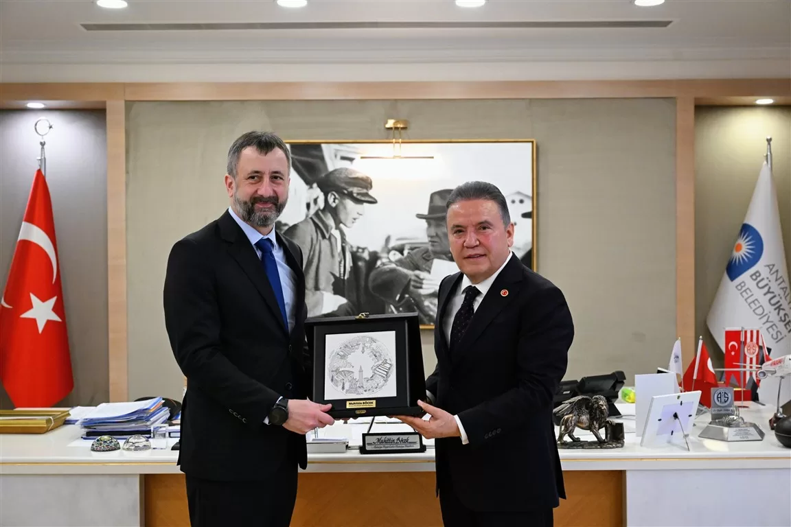 Çek Cumhuriyeti Ankara Büyükelçisi Petr Stepanek, Antalya Fahri Konsolosu Yeliz Gül Ege ile birlikte Antalya Büyükşehir Belediye Başkanı Muhittin Böcek’i ziyaret etti. Antalya’nın tarım ve turizm potansiyeli hakkında bilgiler veren Başkan Böcek, “Çevre duyarlılığı ve iklim değişikliği konusunda Türkiye’de ilk sırada olan bir belediyeyiz” dedi.