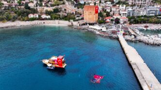 Alanya Tersanesi önünde ve çevresinde dip taraması yapan ekiplerin, deniz dibinden çıkarttıkları atıklar sörfçüler ve Alanya Belediyesi Wasteddin Atık Alım Teknesi yardımıyla toplandı. Farkındalık oluşturmak için kısa sürede yapılan deniz dibi temizliğinden 25 kilogram plastik, 9 kilogram teneke, 65 kilogram cam atığın yanı sıra bir tekerlek ve amfora çömlek çıkarıldı. Dalgıçlar tarafından deniz üzerinde dev Türk bayrağı ve Mustafa Kemal Atatürk posteri açılırken, Akdeniz’in mavisinde muhteşem bir manzara oluşturuldu.