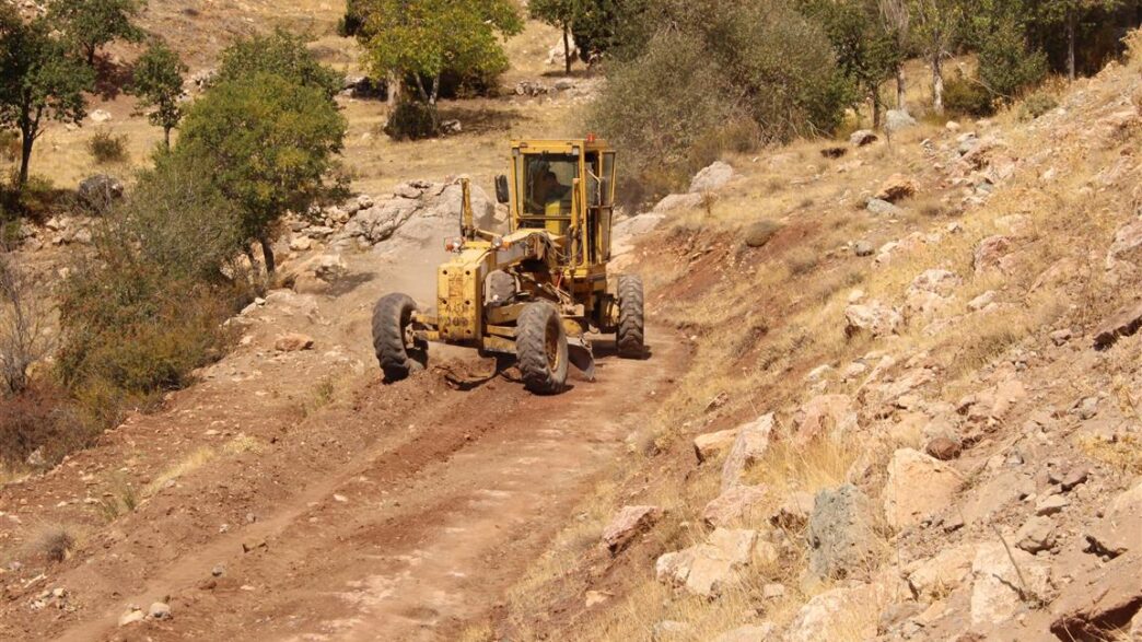 Daha önce oldukça bozuk ve dar olan yolda greyderli bakım, şarampol açma, yol genişletme çalışması yapılıyor.