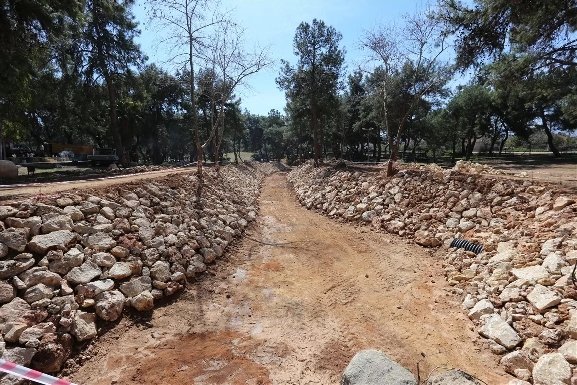Kepez Belediyesi, Gülveren, Avni Tolunay, Ünsal, Şafak ve Yeşilyurt mahallelerinin yağmur suyu tahliyesini daha verimli hale getirmek için Tek Sarnıç Parkı içinden geçen dere yatağında önemli bir ıslah çalışması yürütüyor. İlçedeki 5 mahalleyi kapsayan dere ıslah çalışmalarında üçüncü aşamaya gelindi. İlk etapta taş tahkimat yapımı tamamlandı. İkinci aşama ise hafriyat kazı işlemleriyle ilerledi. Taş tahkimat imalatı çalışmalarının yüzde 80’lik kısmı tamamlanarak, üçüncü aşamaya geçilerek dolgu işlemlerine başlandı. Yaklaşık bin 200 metre uzunluğundaki dere yatağındaki genişletme ve taş tahkimat düzenlemeleri ile yüksek debili yağmur sularının daha verimli şekilde akması sağlanacak. Çalışmalar, yan kollarla birlikte düzenlenerek, büyük oranda bir yağmur suyu tahliye sisteminin oluşturulması amaçlanıyor.