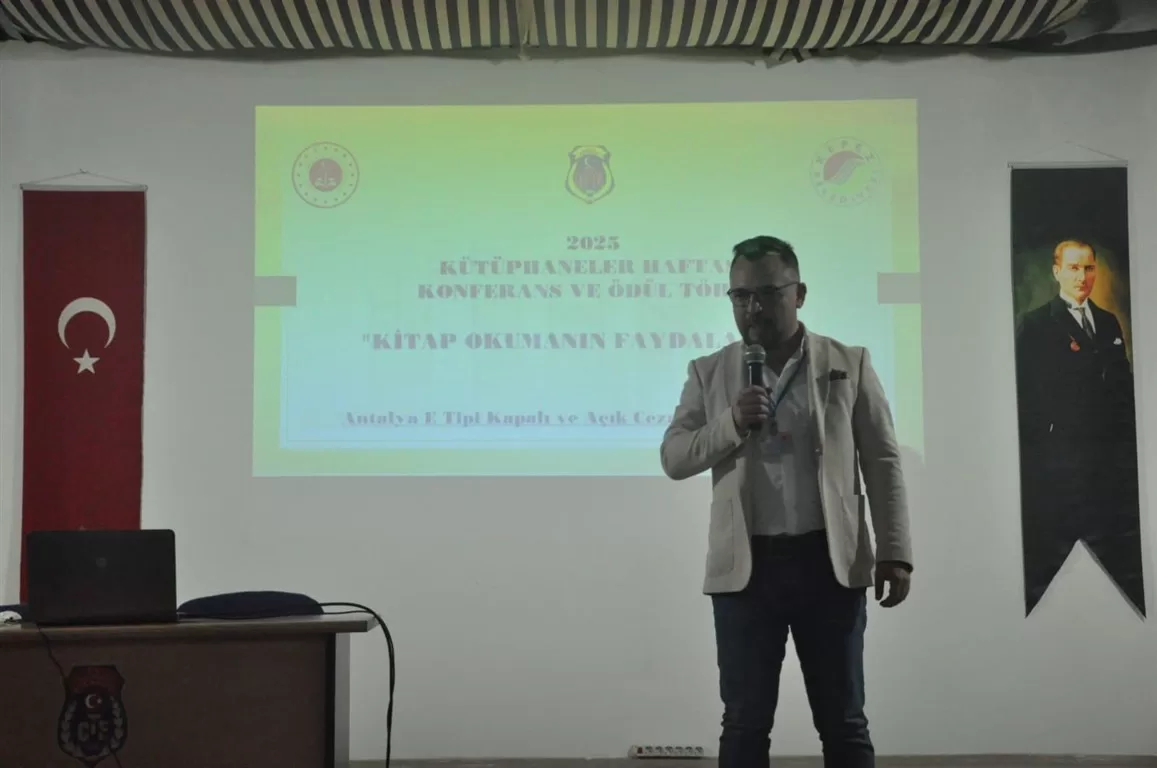 Kepez Belediyesi, Kütüphane Haftası kapsamında, hükümlü ve tutuklulara kitap sevgisini aşılamak amacıyla Antalya E Tipi Ceza İnfaz Kurumu’nda özel bir konferans düzenledi. Kepez Belediyesi Kütüphaneler Koordinatörü Oğuzhan Ceylan, kitapların ve kütüphanelerin insanlık tarihindeki yerini ve önemini anlattı.