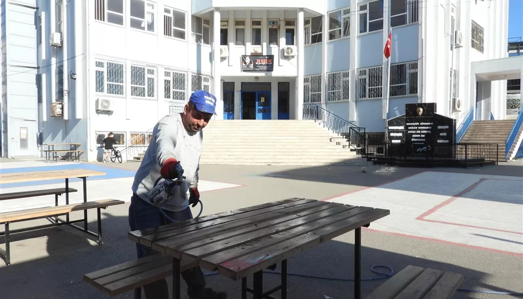 Belediyenin Park ve Bahçeler Müdürlüğü ekipleri tarafından yürütülen çalışmalarda, okul bahçelerinde yer alan oturma grupları ve kamelyalar yenilendi. Ahşap alanların bakımının tamamlandığı, kullanım ömrünü dolduran bölümlerin ise yeniden işlevsel hale getirildiği belirtildi.