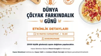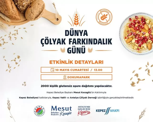 Kepez Belediyesi’nin katkılarıyla, Kepez Vakfı ve Antalya Çölyak Derneği iş birliğinde, Dünya Çölyak Farkındalık Günü kapsamında 10 Mayıs Cumartesi günü saat 13.00’da Dokumapark’ta geniş katılımlı bir etkinlik gerçekleştirilecek.