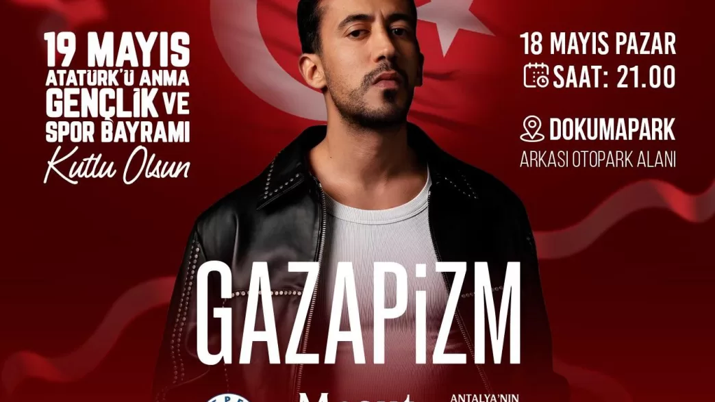 Kepez’de, Gazi Mustafa Kemal Atatürk’ün gençliğe armağan ettiği 19 Mayıs Gençlik ve Spor Bayramı, dolu dolu etkinliklerle kutlanacak. Kutlamalar, 17 Mayıs Cumartesi günü saat 20.30’da Kepez Belediyesi Çocuk ve Gençlik Senfoni Orkestrası eşliğinde Dokuma Park’ta sahnelenecek “Edip Akbayram ve Volkan Konak Şarkıları” konseriyle başlayacak. 18 Mayıs Pazar günü saat 21.00’de ise gençlerin severek dinlediği ünlü rap sanatçısı Gazapizm, Dokumapark’ta sahne alacak. Gençliğin sesi Gazapizm, Antalyalı hayranlarına muhteşem bir konser verecek.
