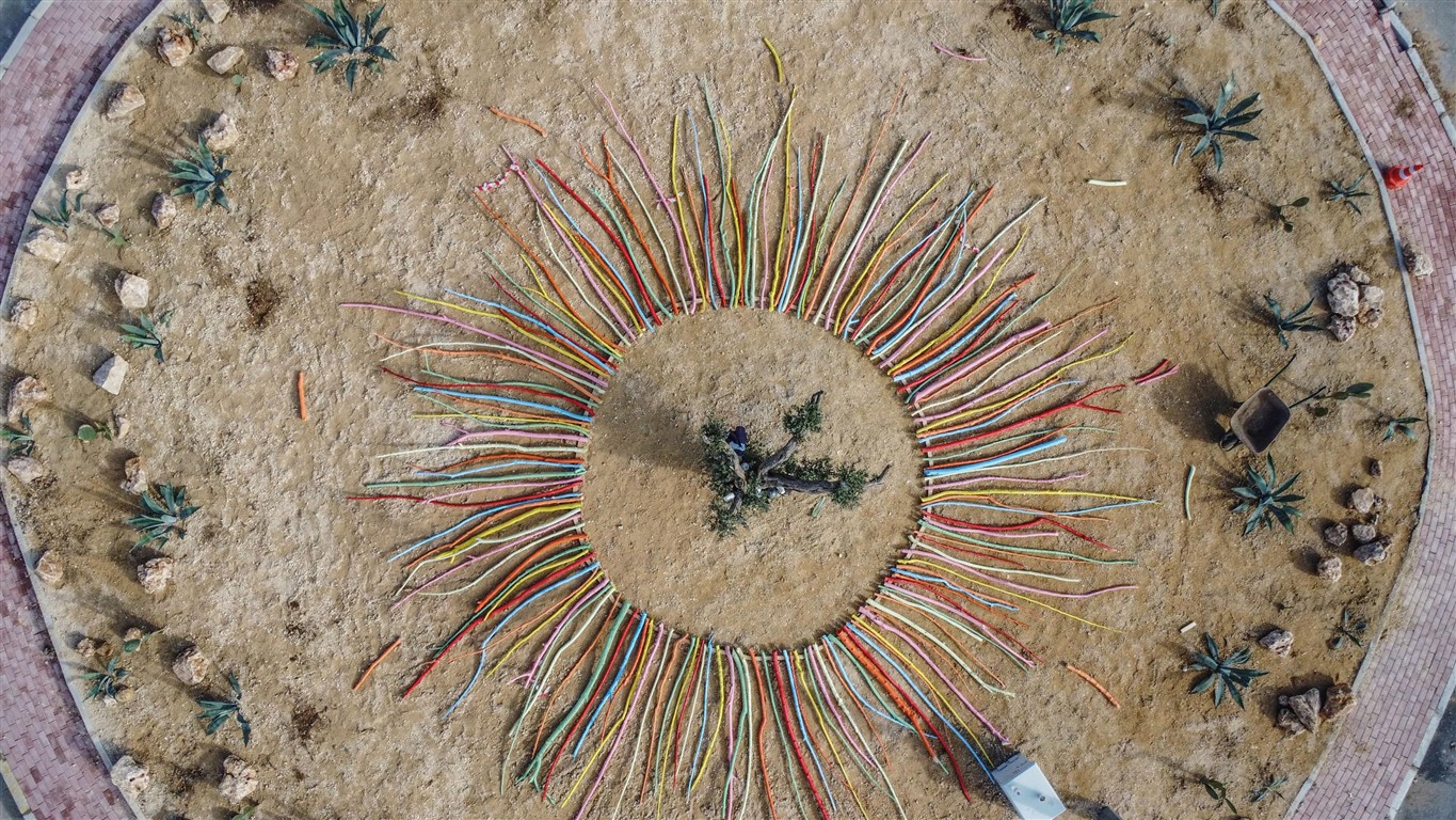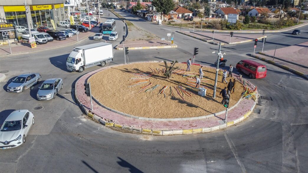 Park ve Bahçeler Müdürlüğü ise kavşaktaki yeşil alan çalışmasında ise kurakçıl peyzaj tekniğini seçti. Yeşil mimarinin sürdürülebilirliği açısından alanda, kurakçıl peyzaj yöntemi olan kaya bahçesi düzenlemesi gerçekleştirildi. Merkezinde yetişkin zeytin ağacının bulunduğu tasarımda doğal kayalar, ağaç budamasında kesilen ve çeşitli renklerde boyanan dallar, suya dayanaklı Agave ile Frenk yemişi bitkisi kullanıldı. Düzenlemenin tamamlanmasıyla kavşak, rengarenk bir estetik görünüme kavuştu. Kavşağın çevresinde zarar gören bordür ile parke taşlarının tamiri de yapılacak. Elmalı Hamdi Hazır ile Hasan Polatkan caddelerinin refüjüne ise zeytin ağacı fidanları dikilecek.