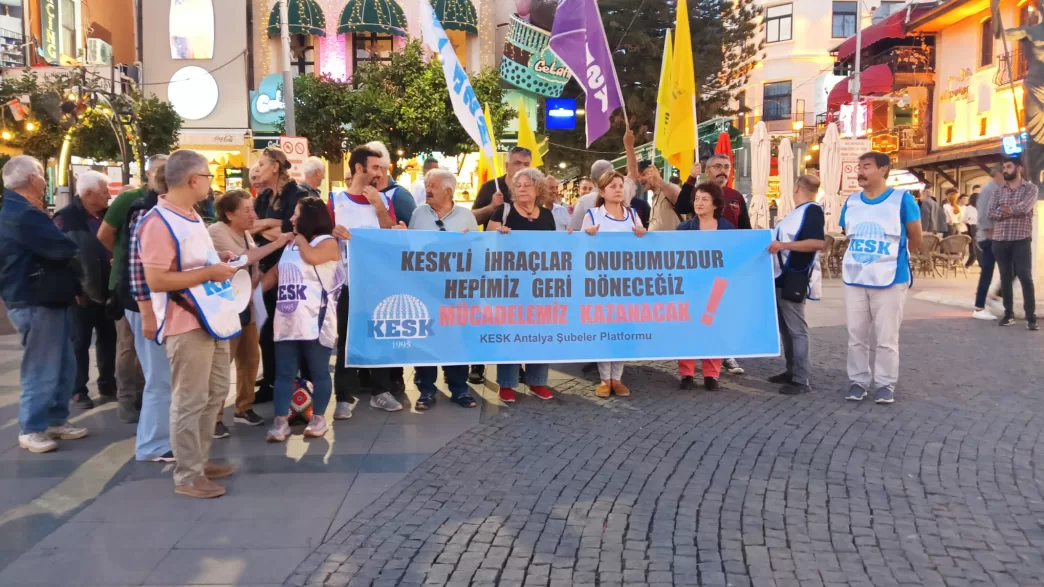 KESK Antalya Şubeler Platformu, kamu emekçilerinin hukuksuz ihraçlarına karşı başlatılan “5 Gün, 7 Kent, Tek Ses” yürüyüşüne destek amacıyla Attalos Anıtı önünde basın açıklaması düzenledi. Açıklamada, “İhraç edilen arkadaşlarımız yalnızca işlerinden değil, yaşam haklarından da mahrum bırakıldı” denildi.