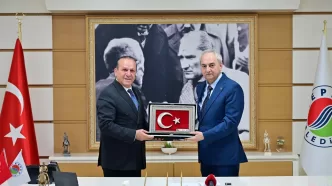 Kocagöz’ün, Ataoğlu’na Türk bayrağı hediye ettiği aktarıldı. KKTC heyetinin, makamdaki buluşmanın ardından Kepez’deki hizmet çalışmalarını incelediği belirtildi.
