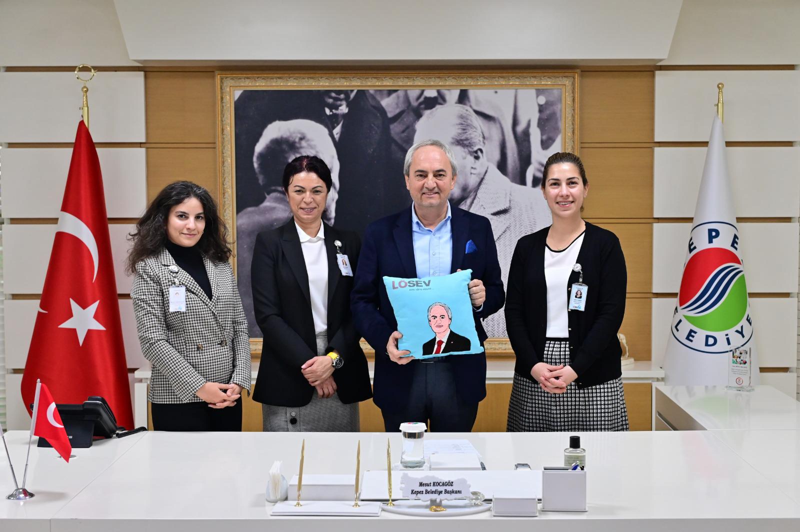 Kepez Belediyesi, 2-8 Kasım Lösemili Çocuklar Haftası’nda LÖSEV’e verdiği destek ve katkılarından dolayı teşekkür sertifikasıyla taltif edildi. Desteğin simgesi teşekkür sertifikasını teslim alan Başkan Mesut Kocagöz, “LÖSEV, herhangi bir vakıf değildir. İnsan değerlerinin en üst olduğu bir vakıftır. Kepez Belediyesi olarak her zaman LÖSEV’in yanındayız” dedi.