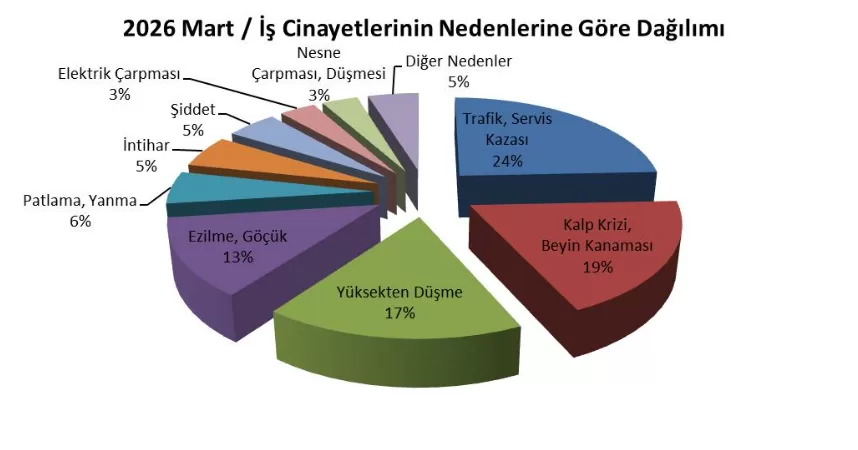 Rapora göre Mart ayında iş cinayetlerinin nedenlerinin dağılımı ise şu şekilde: