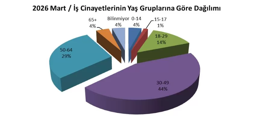Rapora göre Mart ayında iş cinayetlerinin yaş gruplarına göre dağılımı ise şu şekilde:
