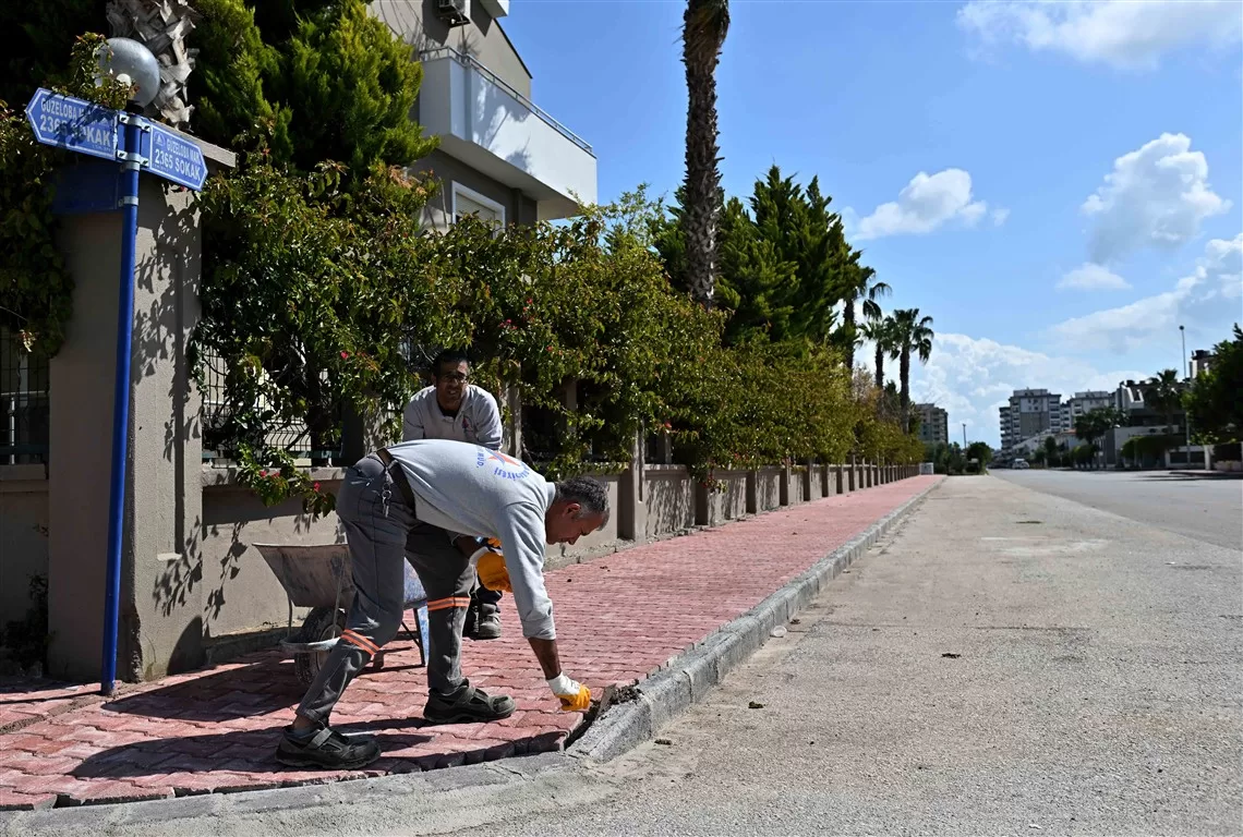Muratpaşa Belediyesi, ilçe sakinlerine konforlu ve güvenli bir ulaşım ağı sağlamak adına çalışmalarına hız kesmeden devam ediyor. Fen İşleri Müdürlüğü ekipleri bu kez 40 bini aşkın nüfusuyla Antalya’nın en kalabalık mahallelerinden biri olan Güzeloba’da kaldırım çalışmalarını başlattı. 2365 ve 2385 sokaklarda başlatılan çalışmada zeminin eski kaldırım taşlarından temizlenmesinin ardından ekipler, sokağa yeni kaldırım taşlarını döşedi.