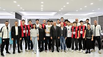 Antalya’da 2’ncilik elde ederek Bölge Şampiyonası’na katılmaya hak kazanan Muratpaşa Belediyespor’un U-18 Basketbol Takımı oyuncuları, Belediye Başkanı Ümit Uysal’ı makamında ziyaret etti.