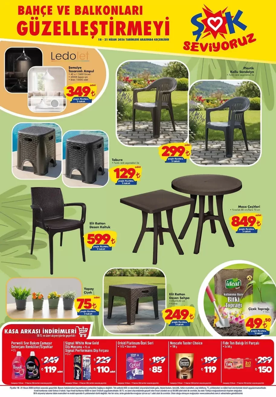 ŞOK marketleri, 18-21 Nisan 2026 tarihleri arasında geçerli olacak yeni “Cumartesi Fırsatlarını Seviyoruz” aktüel ürün kataloğunu duyurdu. Bu haftanın kataloğunda küçük ev aletlerinden bahçe ve balkon mobilyalarına, elektronik aksesuarlardan kasa arkası indirimlerine kadar geniş bir ürün yelpazesi yer alıyor. Tüm ürünlerde peşin fiyatına 3 taksit imkanı sunuluyor. İşte ŞOK 18 Nisan 2026 aktüel kataloğundaki ürünler ve fiyatları…